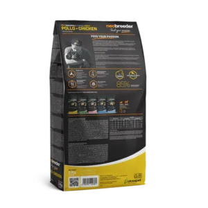 鶏肉(33%)(内乾燥鶏肉85%、新鮮鶏肉15%)、米、黒麦、小麦、鶏脂肪、乾燥七面鳥肉(5%)、トウモロコシ、乾燥ビートパルプ、加水分解鶏レバ―、イナゴマメでんぷん、チコリ(0.3%)、乾燥ビール酵母(0.3%)、グルコサミン、コンドロイチン、ユッカジュース(0.02%)