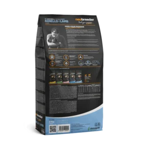 ラム肉(38%)(内乾燥ラム肉85%、新鮮ラム肉15%)、米、黒麦、鶏脂肪、乾燥鶏肉(7%)、小麦、トウモロコシ、乾燥ビートパルプ、魚油(ニシン)、加水分解鶏レバー、イナゴマメでんぷん、チコリ(0.3%)、乾燥ビール酵母(0.3%)、グルコサミン、コンドロイチン、ユッカジュース(0.02%)